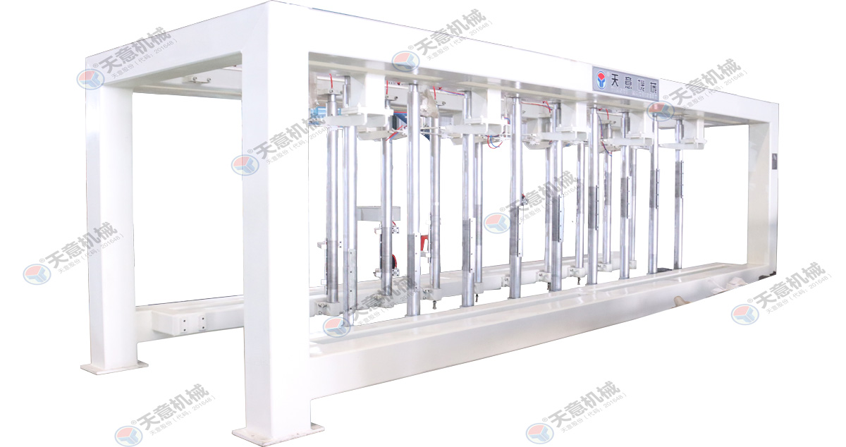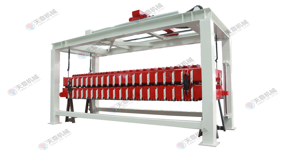 坯體經過發泡靜停達到切割要求后模具轉移至切割區,由翻轉機分離模具并將坯體翻轉90度放到蒸養小車上,然后經過切割工序對坯體進行側面切割刨槽及水平和垂直分割,使之達到外觀尺寸要求,切割工作可以機械化進行也可人工操作,這道工序直接決定ALC板材的制品外觀質量以及某些內在質量。