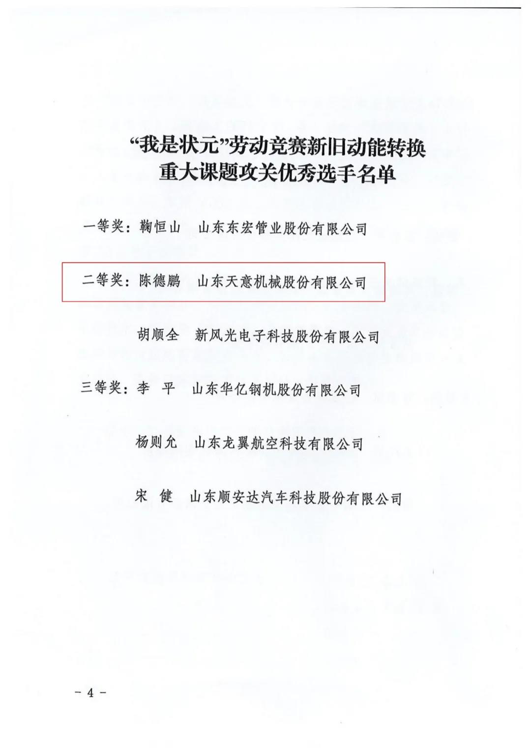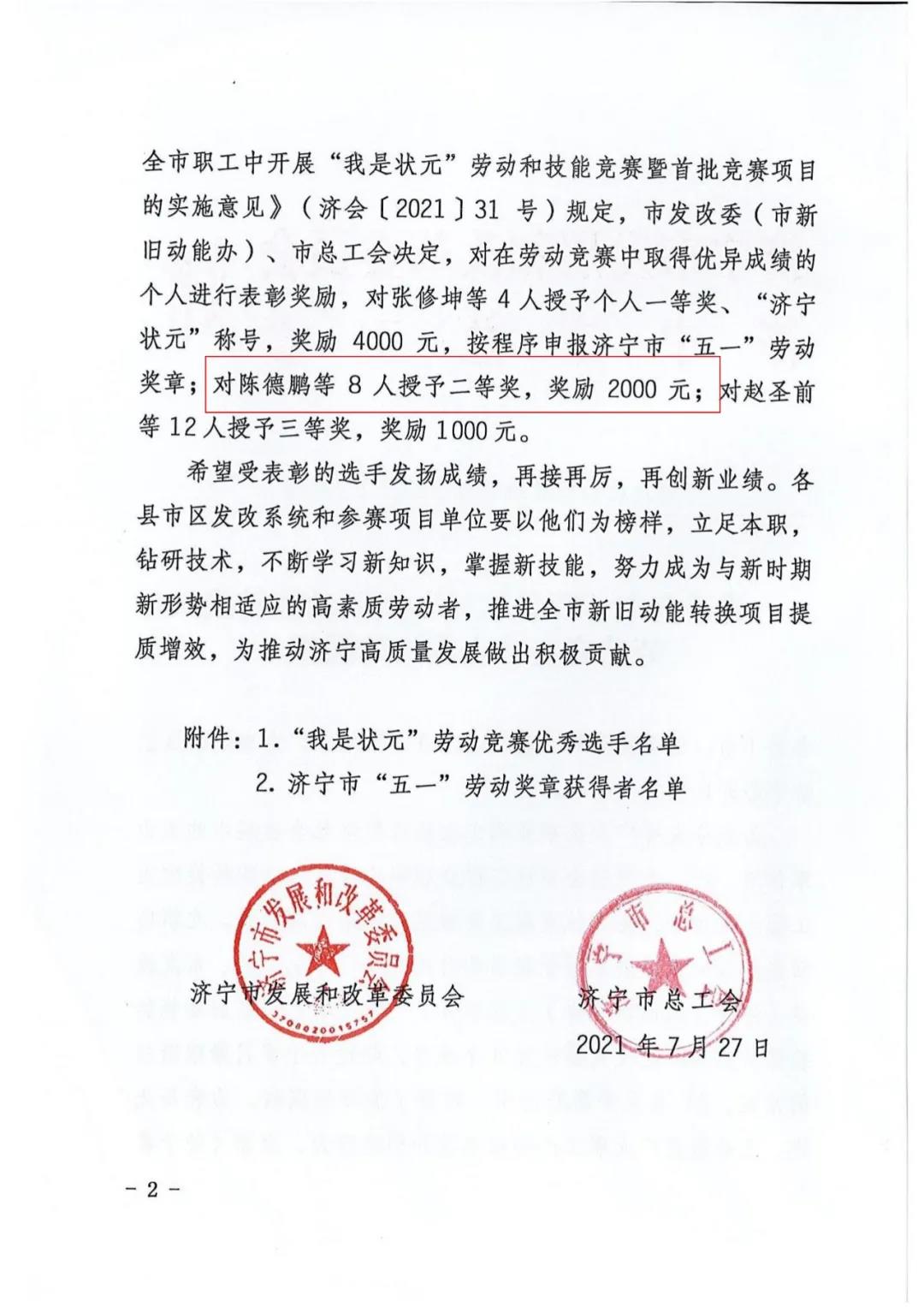 熱烈祝賀我司陳德鵬獲得濟寧市“我是狀元”勞動競賽—新舊動能轉(zhuǎn)換重大課題攻關(guān)競賽單元二等獎