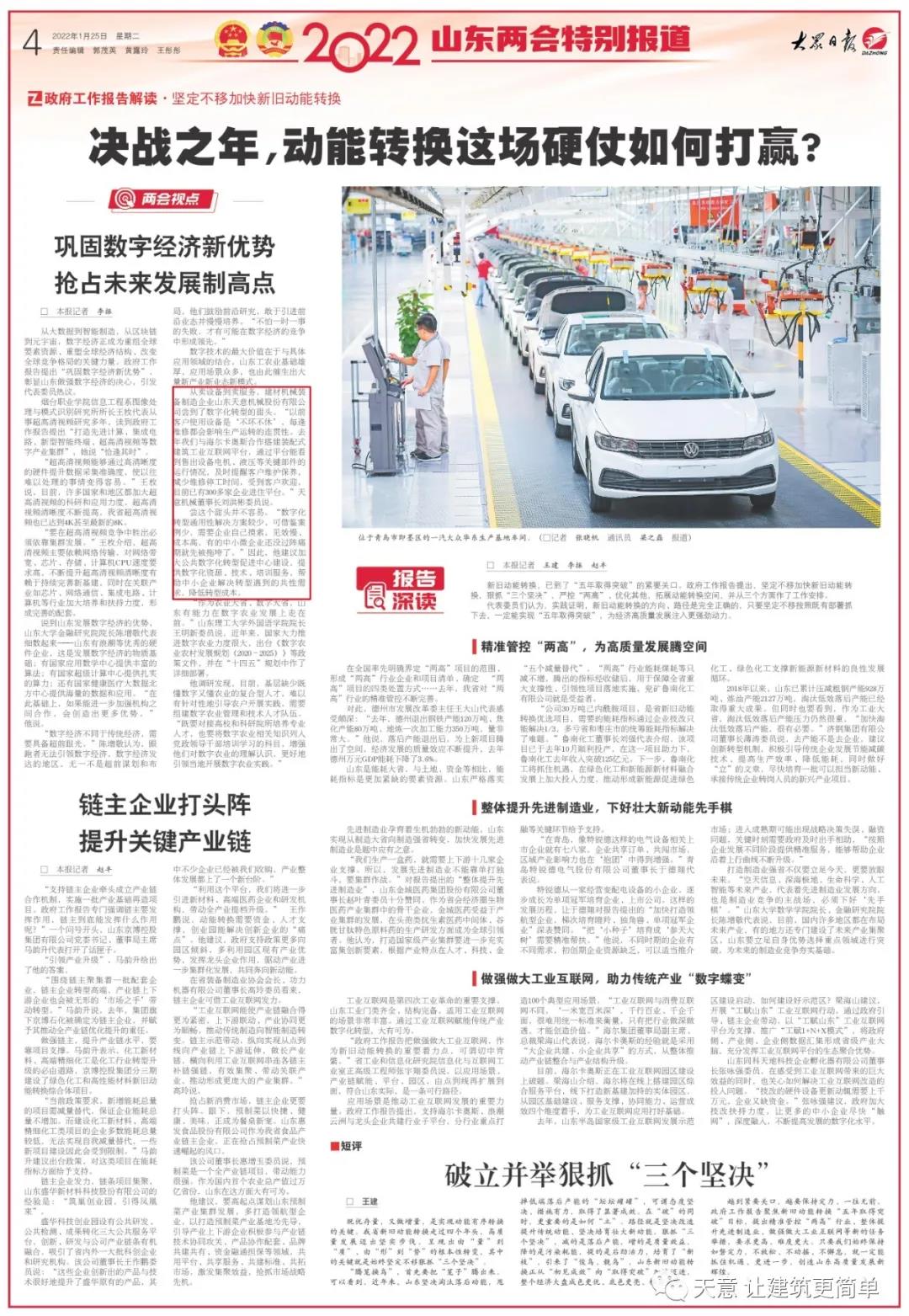 會議期間,劉洪彬提交了《關于加快山東省中小企業數字化轉型的建議》的提案,并就數字化轉型的相關內容接受了大眾日報記者的采訪。劉洪彬告訴記者,“以前客戶使用設備是‘不壞不休’,每逢維修都會影響生產運轉的連貫性。去年我們搭建了裝配式建筑工業互聯網平臺,通過平臺能看到售出設備電機、液壓等關鍵部件的運行情況,及時提醒客戶維護保養,減少維修停工時間,受到客戶歡迎,目前已有300多家企業進駐平臺。“數字化轉型通用性解決方案較少,可借鑒案例少,需要企業自己摸索,見效慢、成本高,有的中小微企業還沒過陣痛期就先被拖垮了。”因此,他建議“加大公共數字化轉型促進中心建設,提供數字化資源、技術、培訓服務,幫助中小企業解決轉型遇到的共性需求,降低轉型成本。”