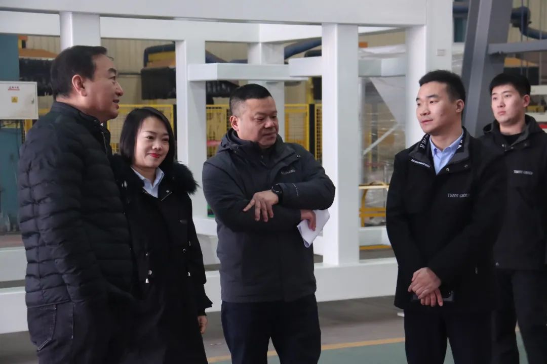 1月5日上午,中國建筑材料工業規劃研究院院長特別助理王新捷、中國絕熱節能材料一體板分會秘書長王林到天意機械調研。天意機械董事長劉洪彬、一體板事業部總經理劉革、國內銷售經理秦艷慧等陪同調研。