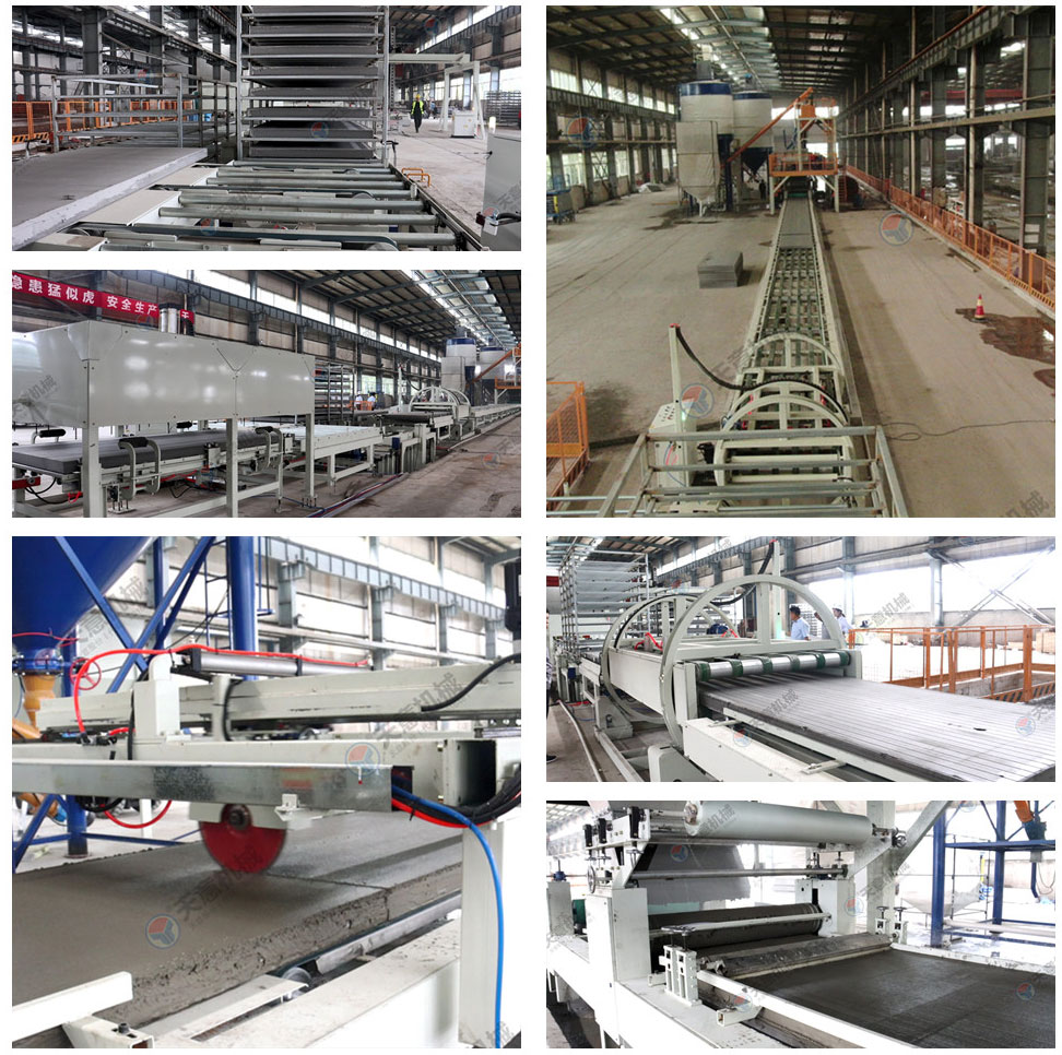 成型輸送線主要由上板輸送線、成型輸送線,加速整理輸送線及送板主機、布料主機、刮平裝置、玻纖網格布架等組成,主要功能是把漿料鋪設在EPS基板上并完成產品的成型,且輔助完成兩端雙工位碼垛機的上下架。