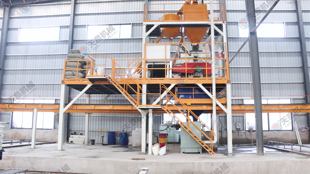 1.采用水泥發泡墻板專用5立方雙螺帶式高速攪拌機,有效容積為3.5立方,攪拌均勻,攪拌速度快(發泡完成后60秒內可將泡沫和料漿攪拌均勻),整體攪拌周期6-8分鐘/次,單次攪拌可澆筑一臺20塊墻板機,雙寬螺帶式設計,可有效的降低泡沫破損率。